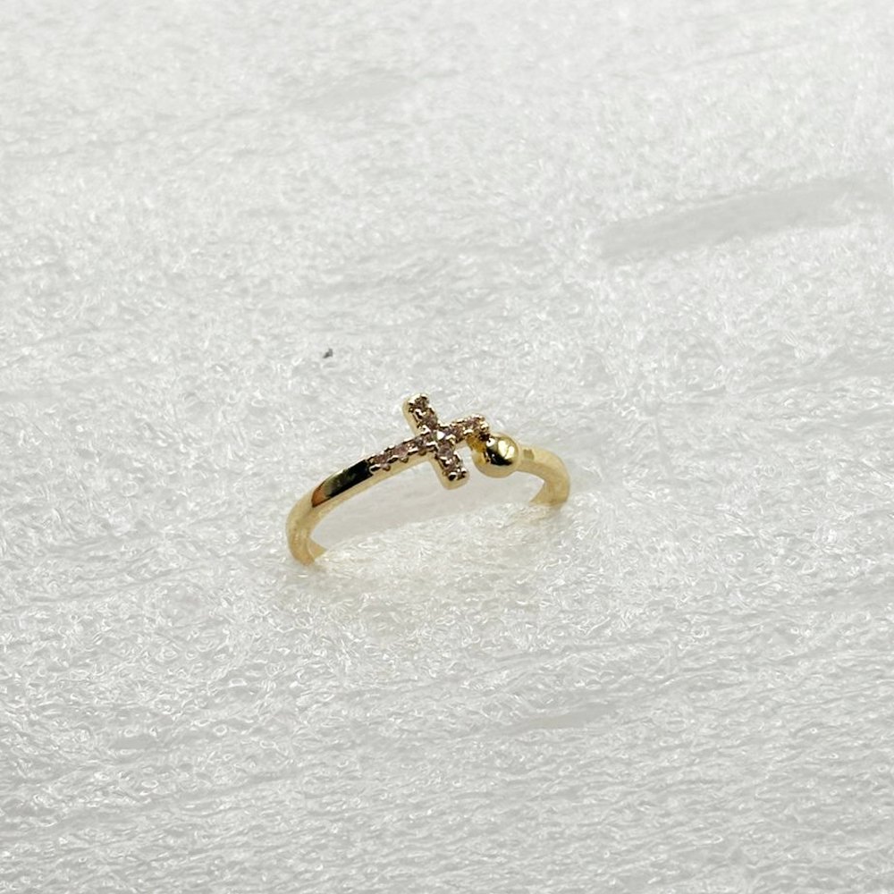 Anel Para Foto Cruz Cravejado Dourada Ideal para tirar foto dos detalhes da decoração de sua unha;  Não molhar, não passar Prep Higienizador, não passar perfume. – Manter em local limpo e seco