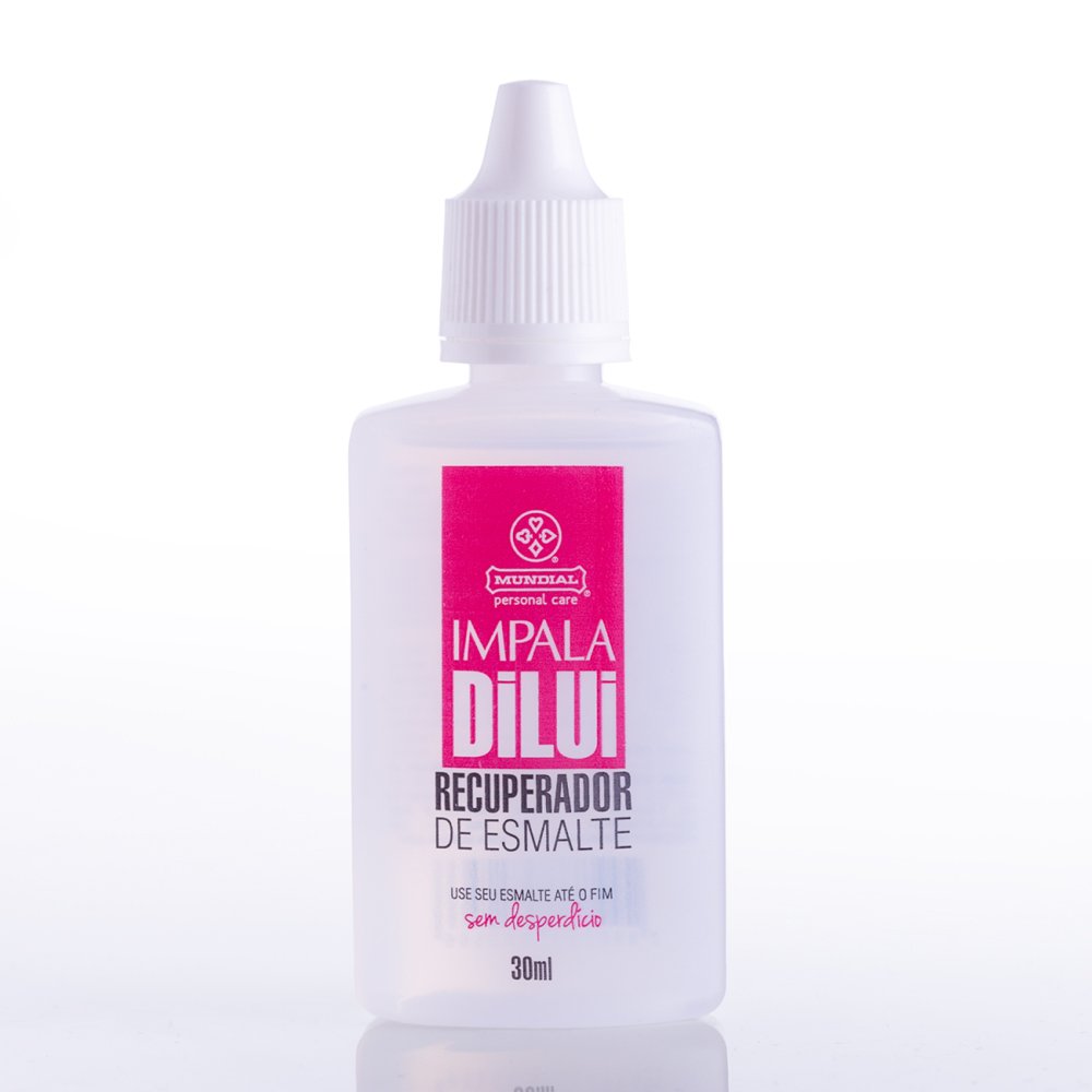 Dilui Recuperador de Esmalte Impala 30ml   Sobre: recupera esmaltes que estão mais grossos deixando-os com uma textura ideal para a aplicação sem perder o brilho. O produto é indicado em situações onde há evaporação do esmalte, tornando-o mais viscoso ao invés de descartá-lo, adicione a quantidade de produto necessário para recuperar seu esmalte.