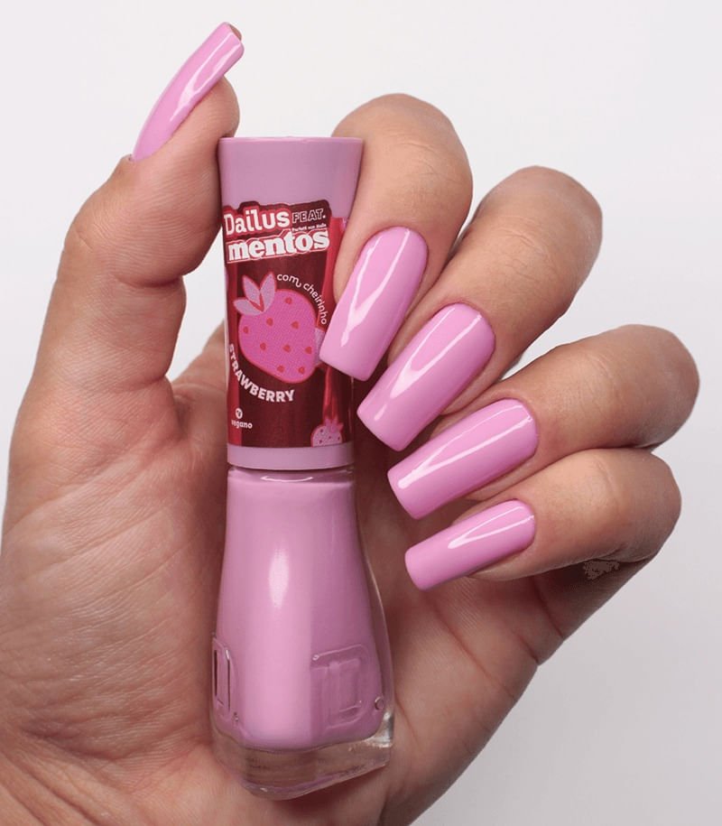 Pra quem ama uma fruta bem docinha, o morango é a pedida certa. E esse Rosinha claro representa exatamente esse sabor! O Esmalte Dailus Mentos Strawberry faz parte da linha Dailus feat. Mentos, tem cheirinho de fruta e acabamento cremoso. Ah, e entrega tudo o que a gente ama: brilho intenso, longa duração e secagem rápida.