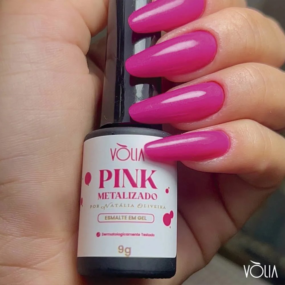 Esmalte em Gel Volia Pink Metalizado 9g O “Pink Metalizado” por Natália Oliveira é um esmalte em gel rosa de tom vivo e aberto. Seu efeito metalizado garante um brilho extra.