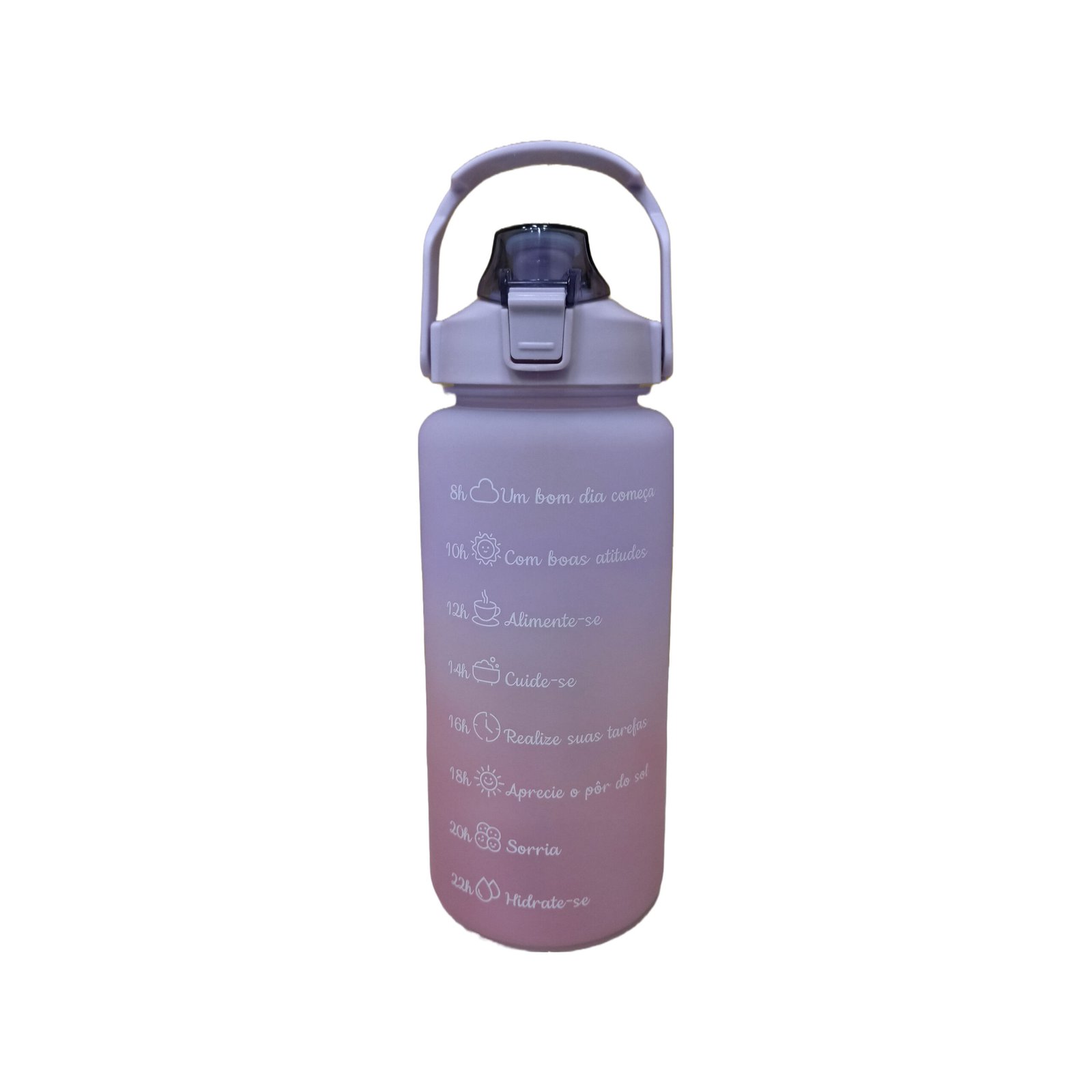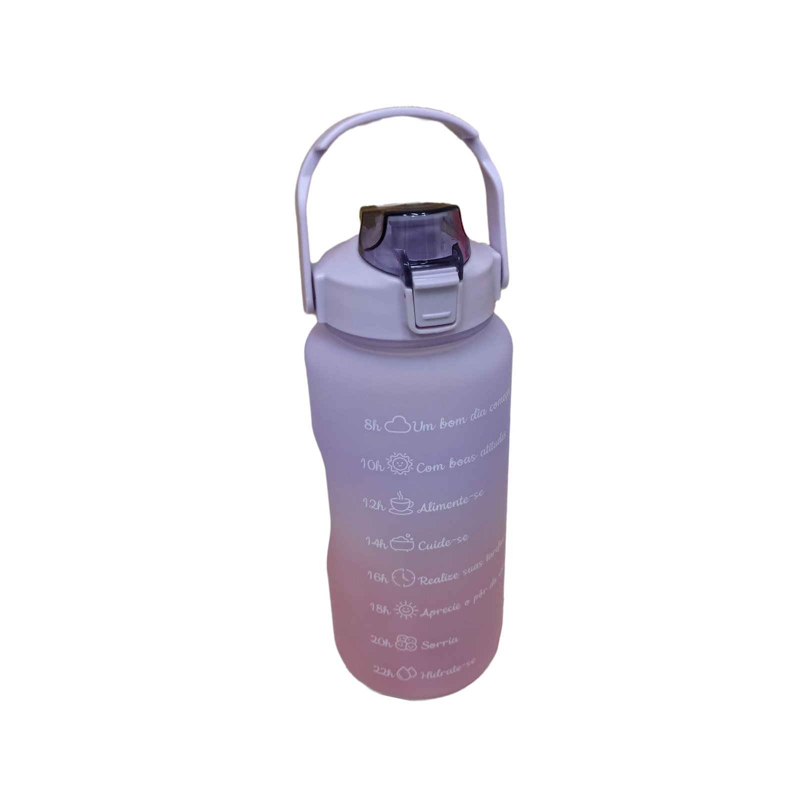 Garrafa Squeeze Tie Dye Roxo 2 Litros   Características:  1. design motivacional, lembra de ficar hidratado e beber água suficiente durante todo o dia. 2. marcadores de tempo e volume-muito adequado para medir seu consumo diário de água. 3. abra o bico com uma mão para beber fácil. 4. bico de silicone: tem um bico […]
