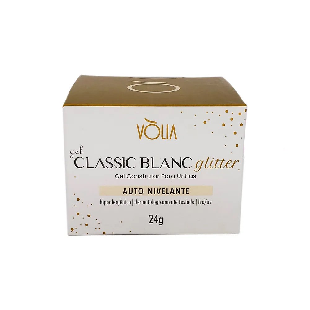 O gel Vòlia Classic Blanc Glitter (24g) é um gel construtor, versátil e auto-nivelante, formulado para oferecer resultados de maior resistência, adesão e força. Sua viscosidade média facilita a aplicação e garante um acabamento perfeito. Sua tonalidade possui uma coloração perfeita baseada nas misturinhas para babyboomer, além de ser ideal, dependendo da quantidade da aplicação, para efeitos de borda livre e francesinha. Possui em sua fórmula um agente catalisador que impede a unha de ficar amarelada, garantindo o branco ideal e perfeito para o efeito desejado. Pode ser usado na pré-curvatura e no ponto de tensão, em todos os tipos de alongamentos e procedimentos. Agora com secagem mais rápida, garante resultados ainda mais duradouros e resistentes.