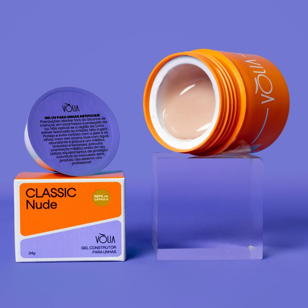 O Gel Classic Nude Vòlia é um gel construtor, versátil e autonivelante para construção de unhas de fibra, molde, tips, dentre outros.