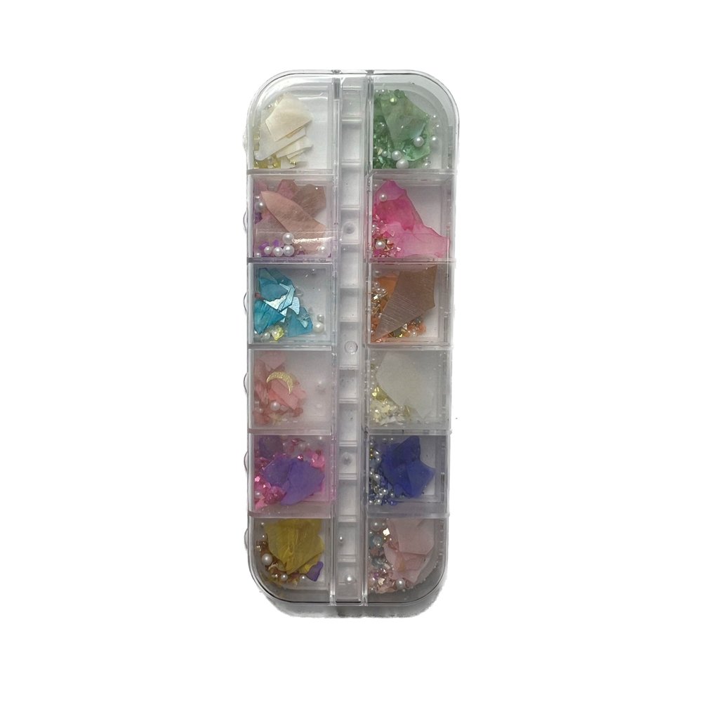 -Kit Madre Pérola Dafu: Decoração e acessórios para Nails Art. Decoração de unhas porcelana, acrigel ou design de unhas. *Contém 12 Unidades* -Variação De Cores -Kit Madre Pérola