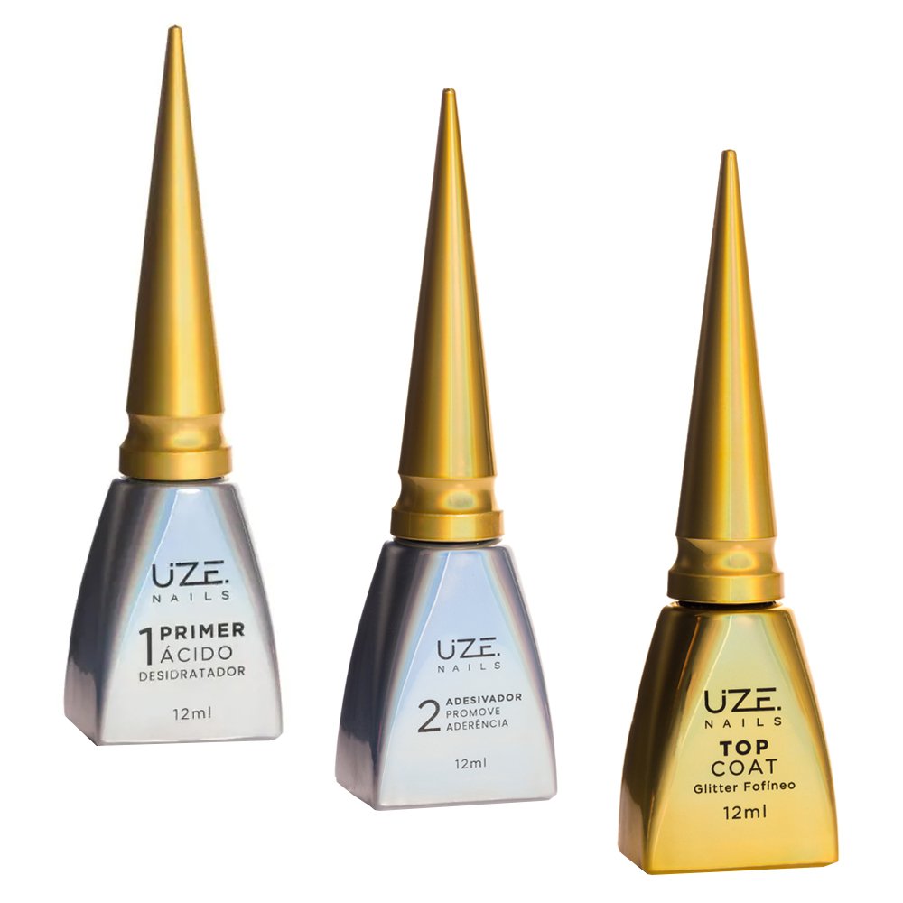 Kit Uze Primer Ácido + Adesivador + Top Coat Glitter Fofíneo