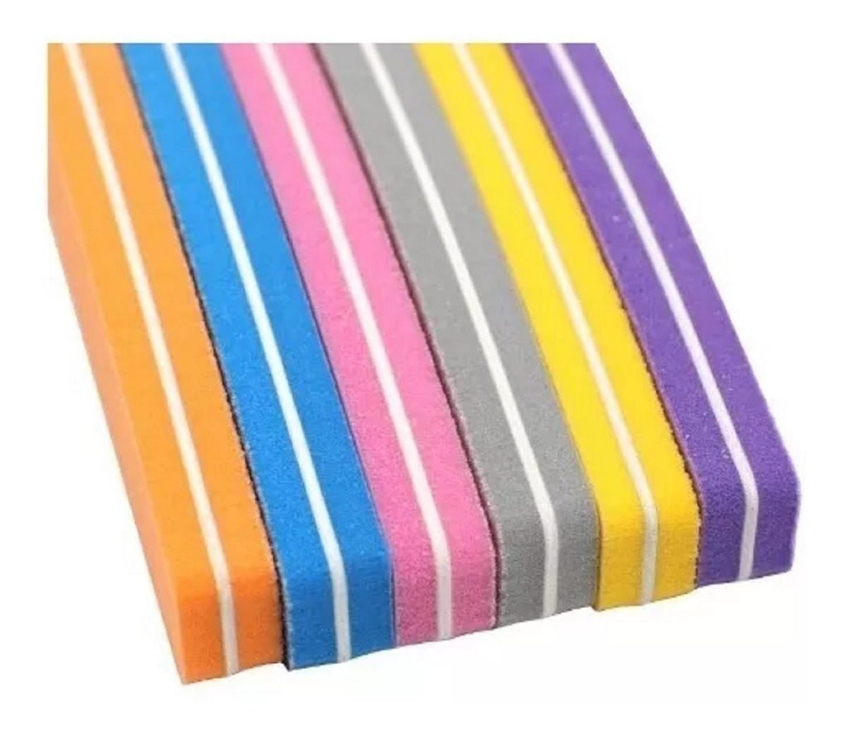 Possui dupla face com gramaturas diferentes para modelar e polir, sendo durável, resistente e muito usada em alongamentos de unhas