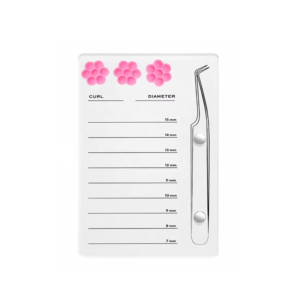 Placa Acrílica Organizadora de Cílios + Batoque Branco Suporte ideal para auxiliar no procedimento de extensão de cílios. Projetado com 2 imãs que seguram a pinça de forma fácil e segura!Possui 3 suportes para batoque