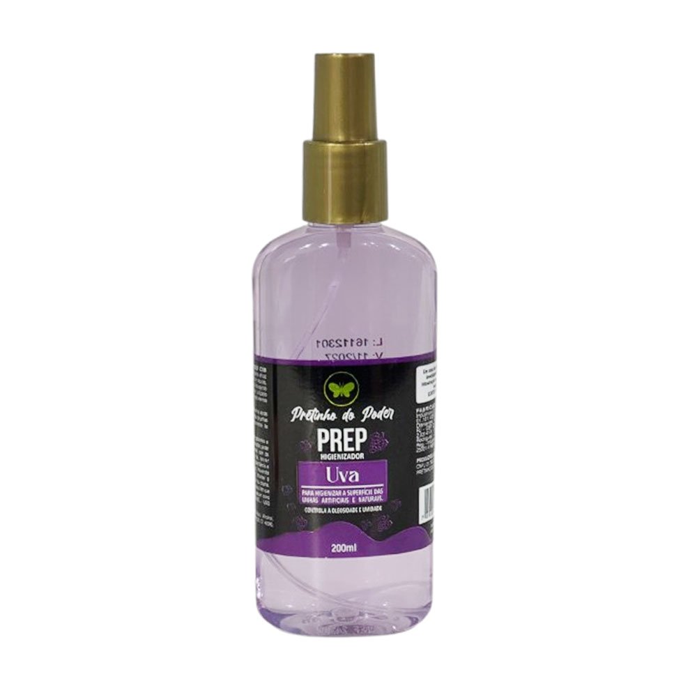 Prep Pretinho do Poder Uva 200ml Higieniza e protege. Auxilia na prevenção de micoses e agressores externos.Auxilia na prevenção de unhas rachadas e quebradiças Prep spray para cuidados da unha – 200 ml.