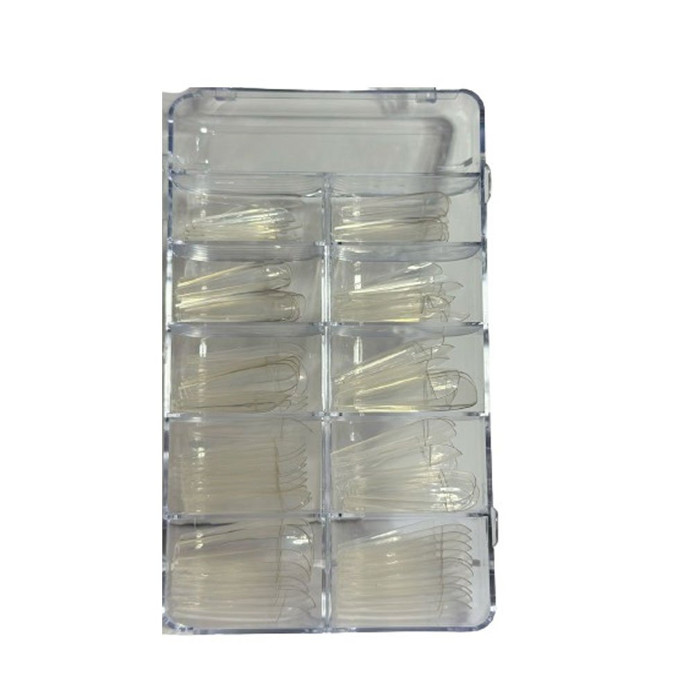 Postiça com Marcação Transparente DZ 100 unidades – Alta resistência – Prolonga o tempo do alongamento deixando naturalmente um formato lindo de Bailarina.