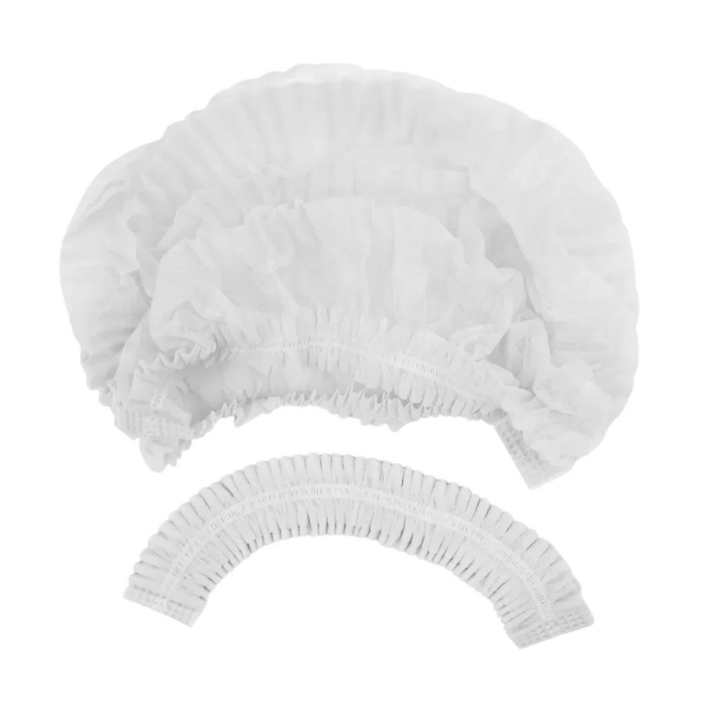 Toucas de proteção capilar sanfonadas em formato de tiras. Fabricadas em tecido não tecido (TNT), com elásticos simples e atóxicas. Material descartável e de uso único.
