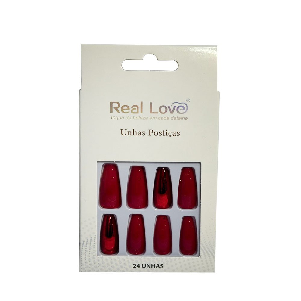 Unha Postiça Vermelha Bailarina Real Love 24 Unidades