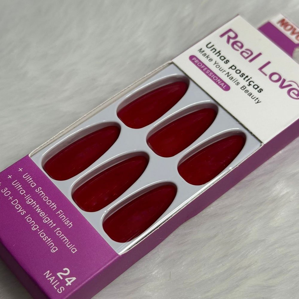 Unha Postiça Vermelho Almond Real Love 24 Unidades