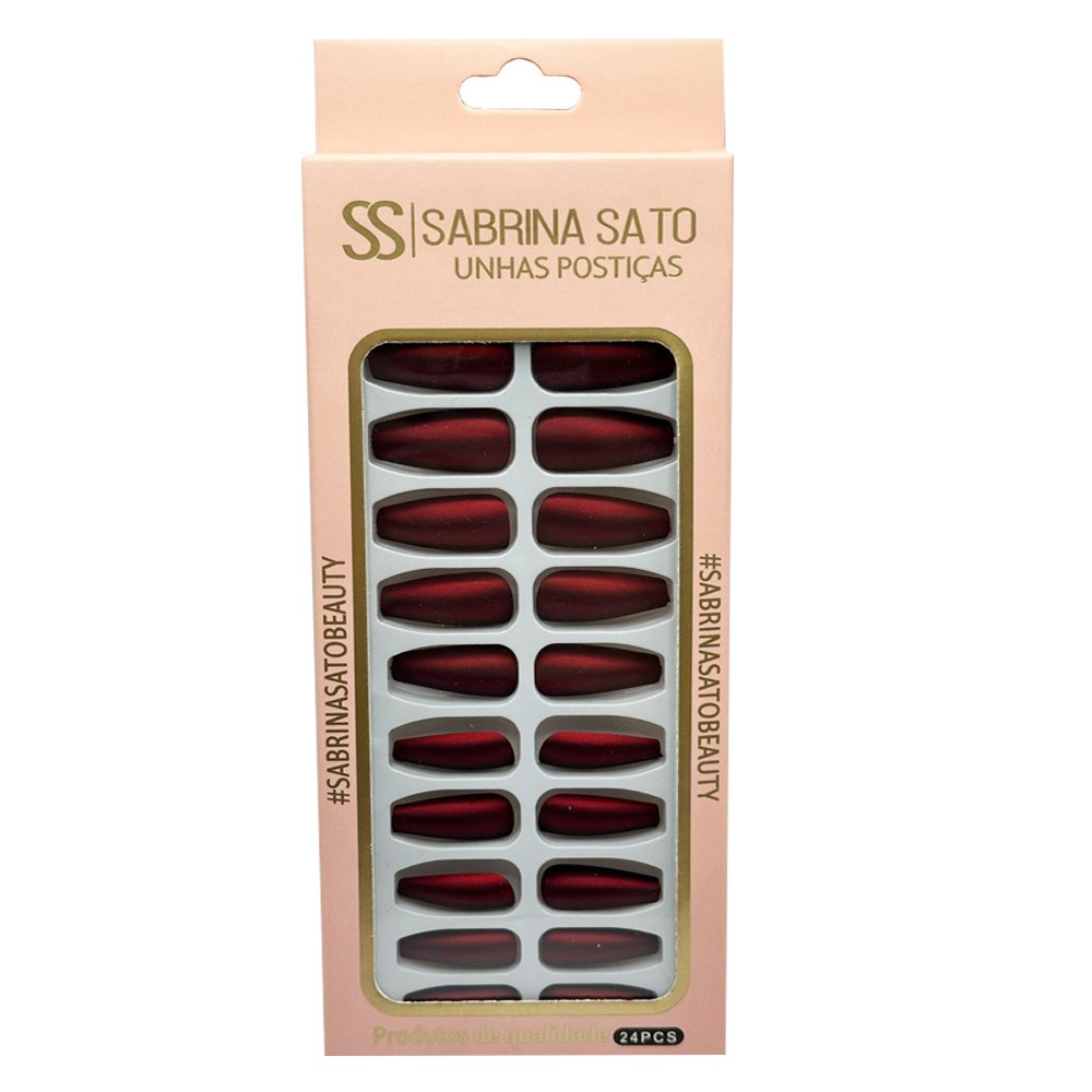 Unha Postiça Vermelho Sangria Bailarina Fosca Sabrina Sato 24 unidades